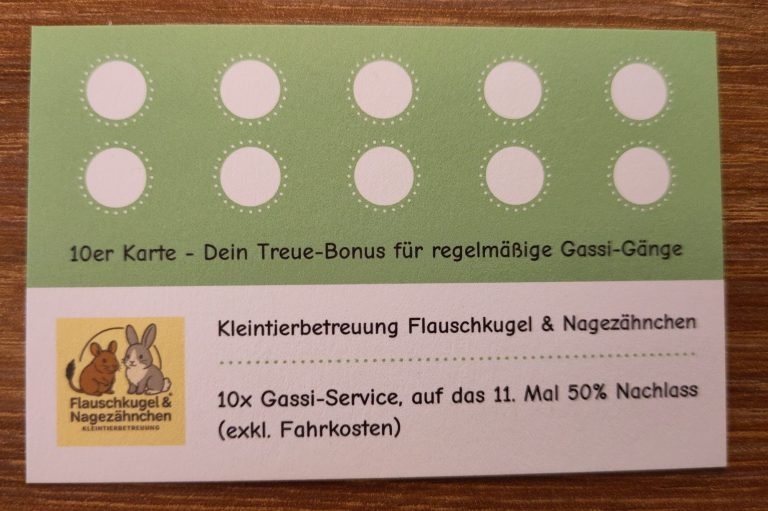 Kleintierbetreuung 10er Karte - Dein Treue-Bonus für regelmäßige Tierbetreuungen